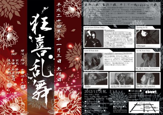 2012ǯ¡¢Ì¾¸Å²°¤ÇAstrum music¤ÎΩ¤Á¾å¤²¤ò¹Ô¤¦¡£Ì¾¸Å²°about¤Ç¤ÏËè½µ·îÍËÆü¤Ë³«ºÅ¤µ¤ì¤Æ¤¤¤ëFree Party¡Öinfection¡×¤Î¥ì¥®¥å¥é¡¼DJ¤ò¶Ð¤á¤Æ¤¤¤ë¡£