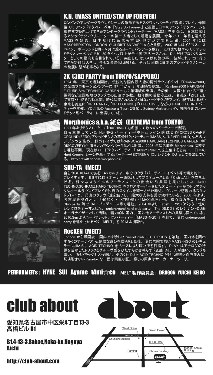 名古屋のクラブ club aboutのパーティ・イベント情報ページです。