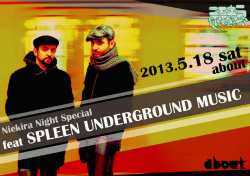 Sam Rouanet (Reynold)とGiovanni Vergaによって2012年に結成され、Deep HouseからエクスペリメンタルなFree Jazz Dubまで、幅広い音楽性を持ったニュープロジェクトが「SPLEEN UNDERGROUND MUSIC」だ。彼らに大きな影響を与えたMiles DavisやMoodymannへの回答を探求すべくその音楽は日々進化しており、ギタリスト、ドラマー、サックスプレイヤーらとのフルバンドセットによ るギグも行っている。Trenton Recordsを主宰するSam Rouanet (Reynold)は、アーティスト、DJ、プロデューサー、A&Rとしてシーン黎明期より多岐に渡り活躍。Giovanni Vergaは、Rotary Disco 76としてDisco、House、Re-editの名盤を数多くプロデュースし、カルトな人気を得ている。この二人の奇跡的な融合から生み出される自由 で実験的な即興音楽は、まさに"Underground"な響きとグルーヴを生みだし続けているのだ。