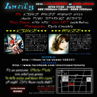 DJ KSUKE & MIKEEがMAIN ACTを務めるElectro Party Lusty!!! club aboutにて不定期に開催され、回を重ねるごとに爆発的な盛り上がりを見せている言わずと知れたエレクトロパーティー!!! 同年4月に行われたLusty 1st Anniversaryでは多くの方々にお越しいただき終始爆発的な盛り上がりを魅せた。 今回も間違いないサウンドと空間を感じに是非Lustyへお越しください!