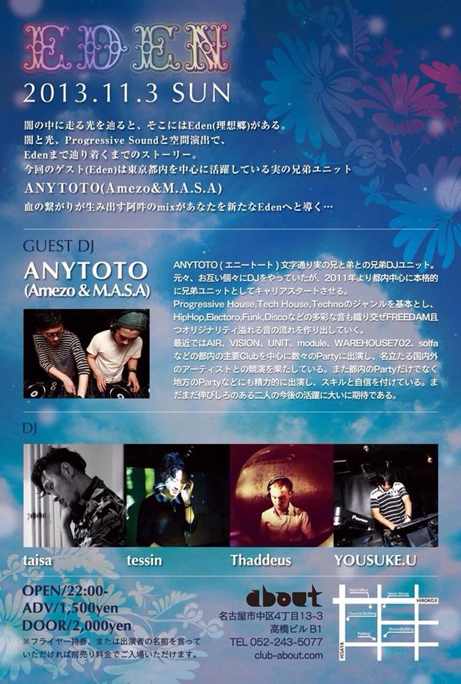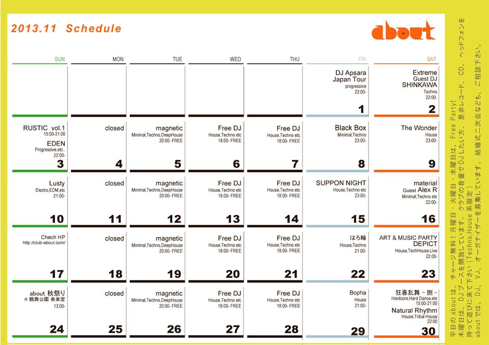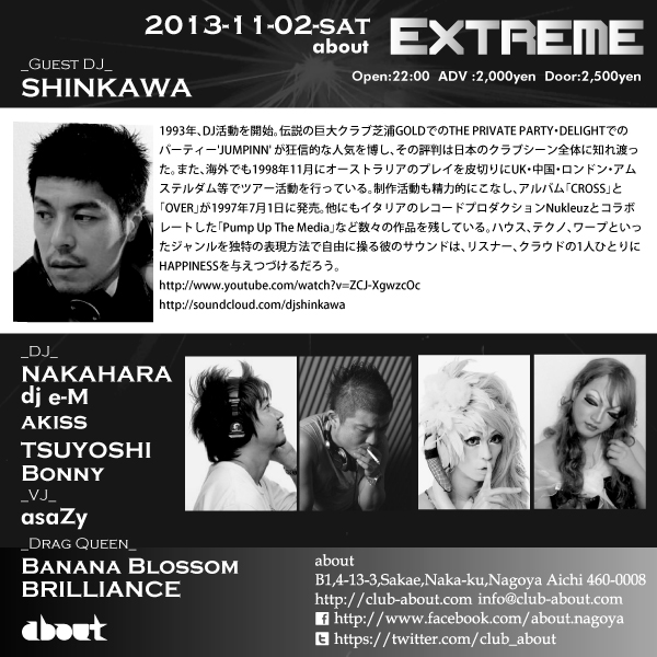 名古屋のクラブ club aboutのパーティ・イベント情報ページです。