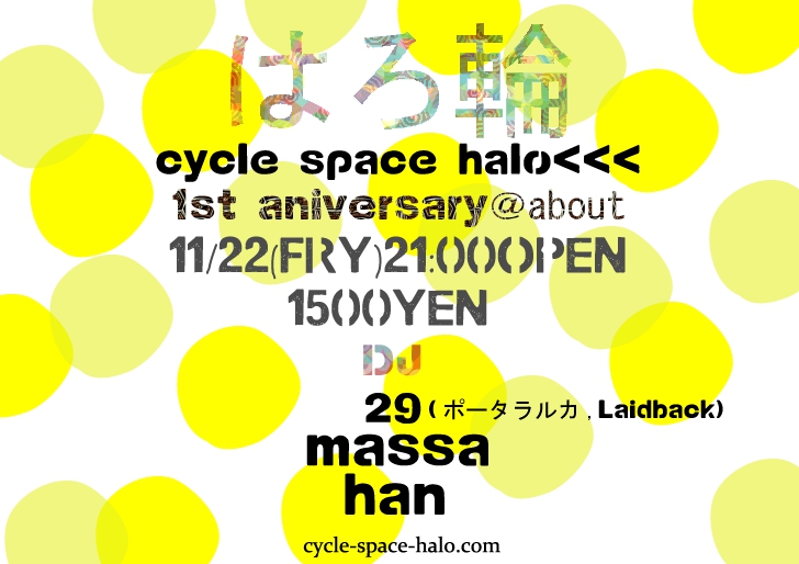有松の自転車屋、Cycle space Haloの一周年記念パーティーです! お世話になっている人々、愉快な仲間と一緒に楽しいひとときを! 自転車もpartyも楽しいことが大好きなハロの店主、ダートボーイが フロアーでも全開でいることでしょう^^ もちろん、Haloの事を知らない人も、自転車に乗らない人も大大大歓迎です!