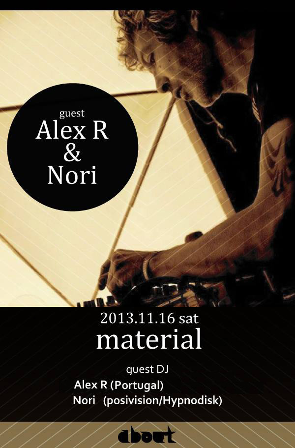 ポルトガルが世界に誇る世界有数のFESTIVALであるBOOM festivalのAmbientステージのボスを14年間、務めたAlex Rとposivisionのエディターで、MASA, Ree-Kが運営するレーベルHypnodisk、ポルトガルのレーベルFlow Vinyl所属DJでもある Nori、aboutのDJ KIYO・DJ KIdOの4人でディープなミーティングパーティを決行!