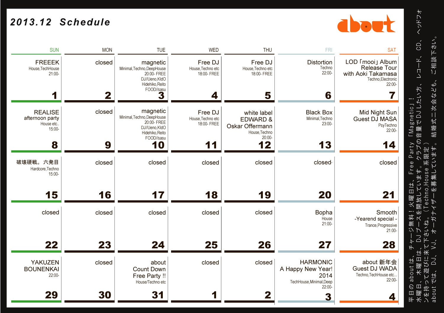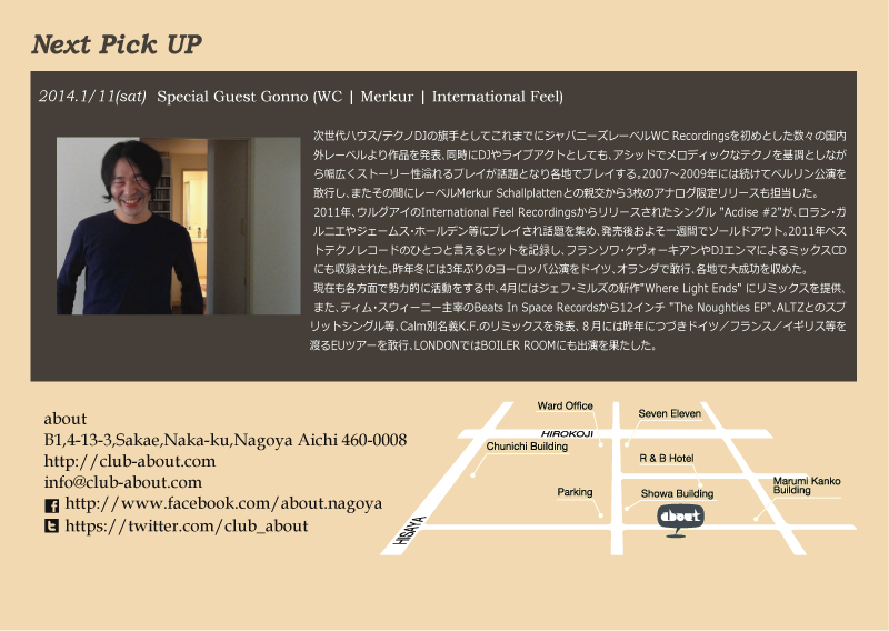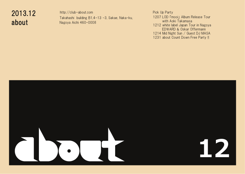 名古屋のクラブ club aboutのパーティ・イベント情報ページです。