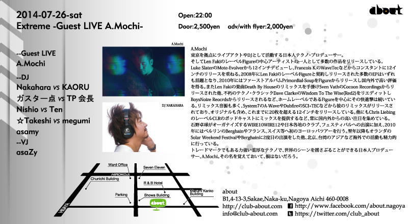 名古屋のクラブ club aboutのパーティ・イベント情報ページです。