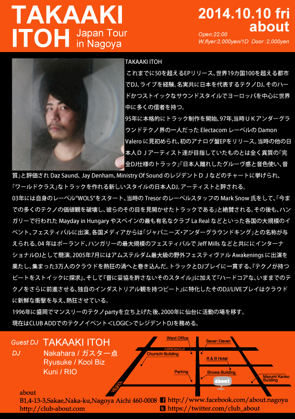 名古屋のクラブ club aboutのパーティ・イベント情報ページです。