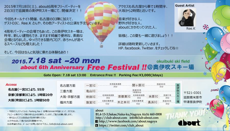 2015年7月18日(土)、about6周年フリーパーティを