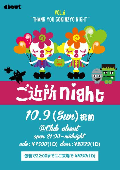 不定期開催してきましたご近所nightですが、、、ついにラストご近所night?ラストも思いっきり笑って呑んで踊って最高のハロウィンパーティーにしましょう(^^)