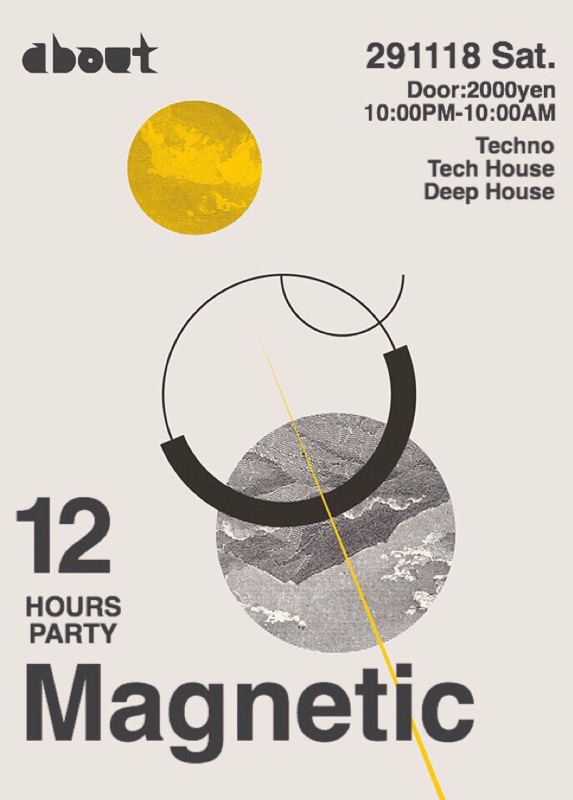 12H Party Magneticは、aboutオーナーKiyoが手がけるLong Run Party!!毎回実力派アーティストをゲストに向かえ12時間ガチンコ勝負を繰り広げます!!名古屋で唯一のアフターアワーズを開催していて、朝の10時まで営業しています。まだまだ週末の夜が終われない、あ・な・た のよりどころヽ( ・∀・)ノ