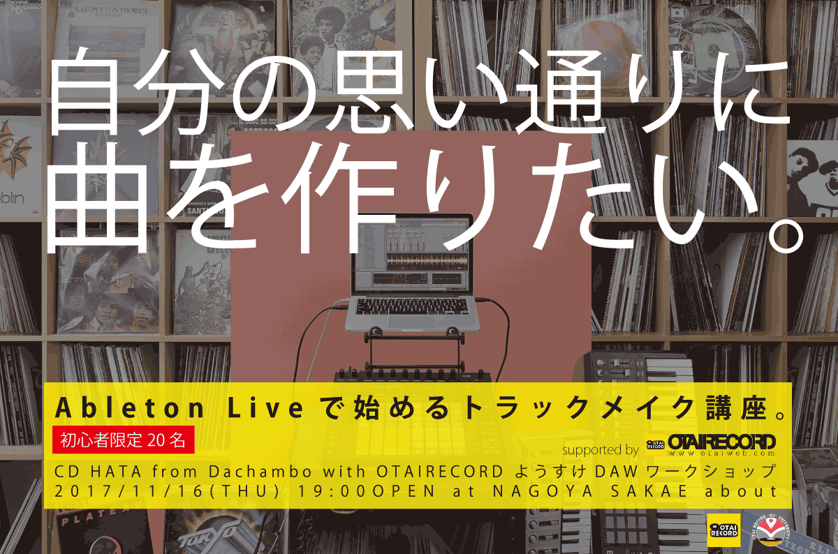Yahoo公認フェス番長”Dachambo”のシンセサイザー担当、またDJとしても活動する”CD HATA”。 300ページに及ぶ「Logic Studio テクニカルマスター」執筆や、DJスクールでの楽曲制作コースの講師、 またAbletonLiveユーザーコミュニティー「Ableton Meetup Tokyo」の運営に携わる”CD HATA”が、 OTAIRECORD ようすけ管理人と共に、DAWのワークショップを名古屋で開催。