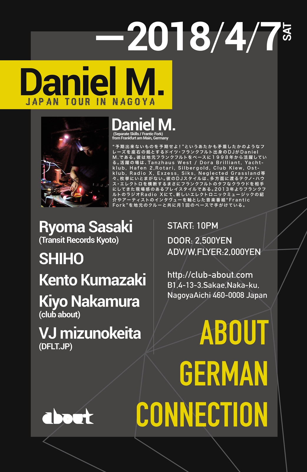名古屋のクラブ club aboutのパーティ・イベント情報ページです。