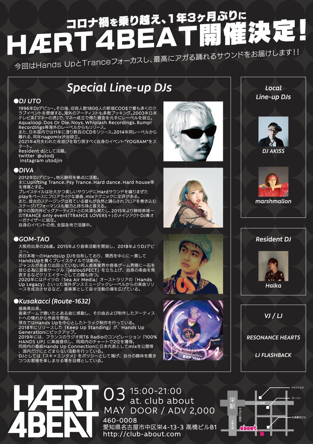 名古屋のクラブ club aboutのパーティ・イベント情報ページです。