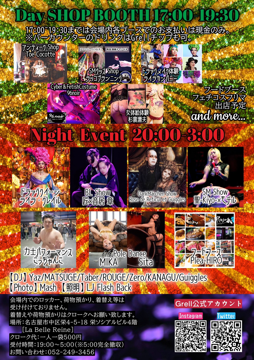17:00-19:30までは会場内各ブースでのお支払いは現金のみ。 ※バーカウンターのドリンクはGrellチップも可。