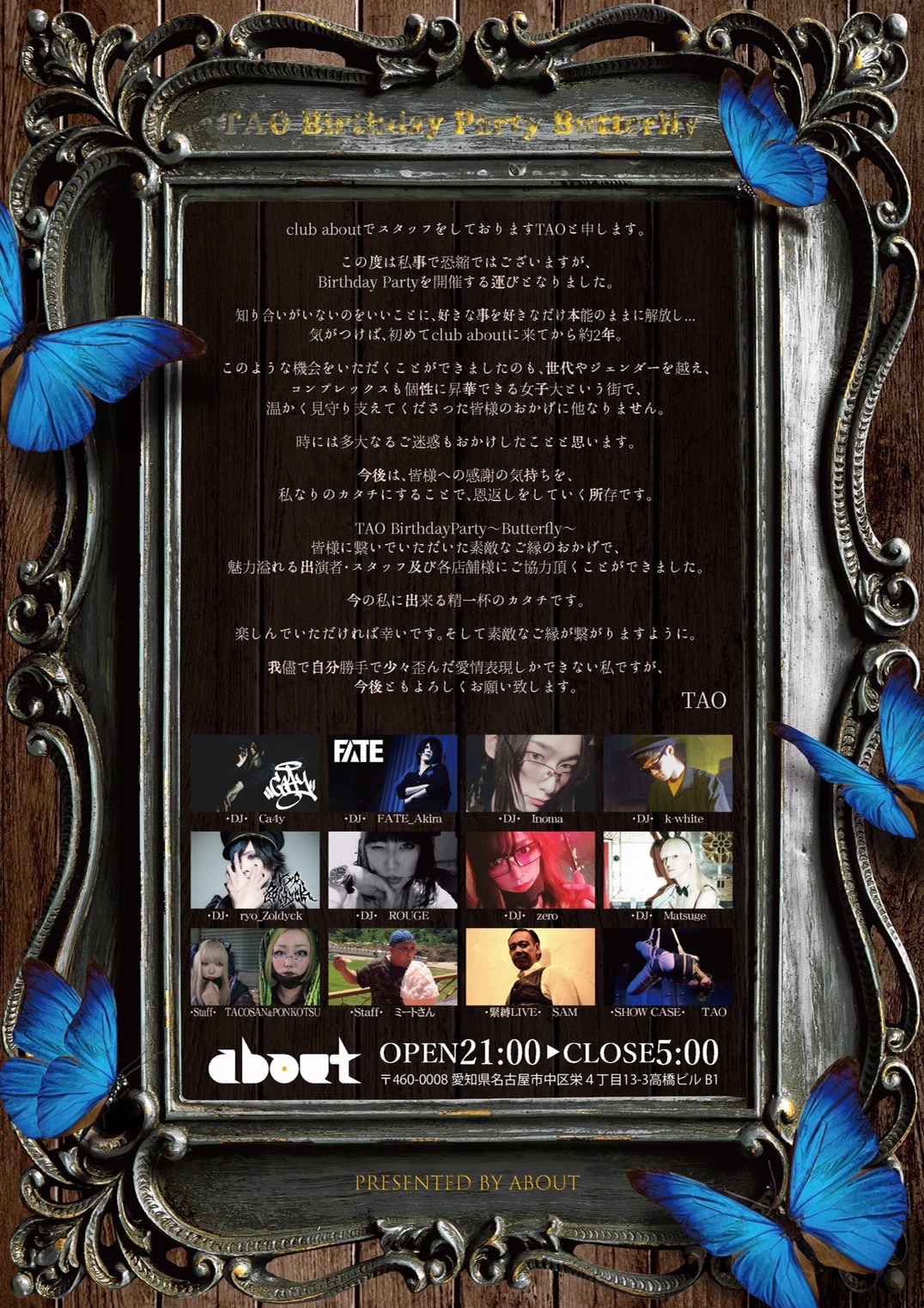 名古屋のクラブ club aboutのパーティ・イベント情報ページです。